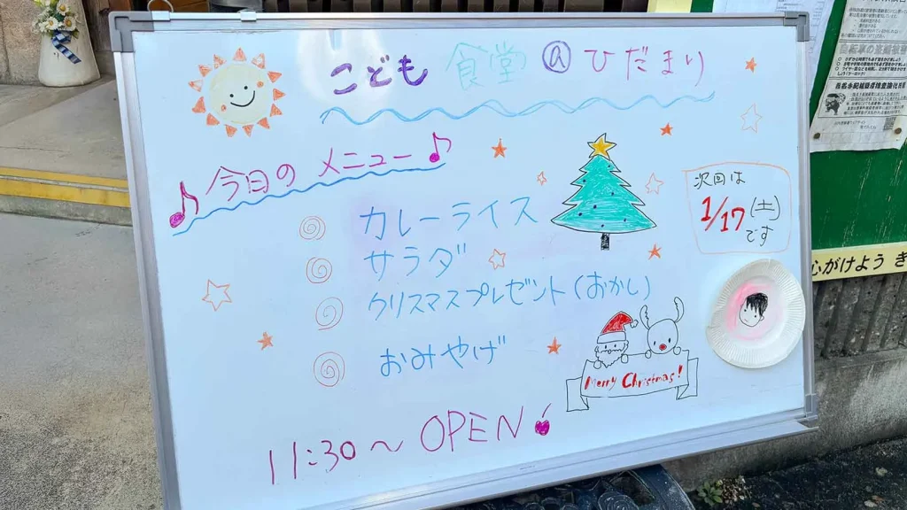【子ども食堂 開催のご報告】 2026年2月27日 / お知らせ, 取組み 2025年12月20日、コミュニティカフェひだまりにて子ども食堂が開催されました。 今回はカレーライスにサラダ、プリンを添えたメニューで、室内は子どもたちの元気な声とカレーの香りに包まれました。友達同士で会話を楽しみながら食事をする姿が印象的で、子供たちからは「学校とは違う集まりで楽しい、また来たい」ボランティアの方からは「準備は大変でも、子どもたちの笑顔を見るとまた続けたいと思える」との声も聞かれました。 地域に根づいた、あたたかな居場所を感じる時間となりました。